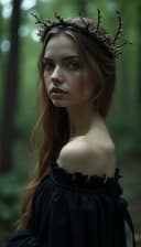 "halloween european woman as a dark fairy in a mystical forest"