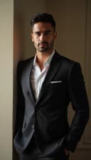 "latin american man in elegant attire softly lit with a gentle atmosphere"