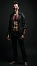 "asian man in zombie costume dark setting spooky and sexy"